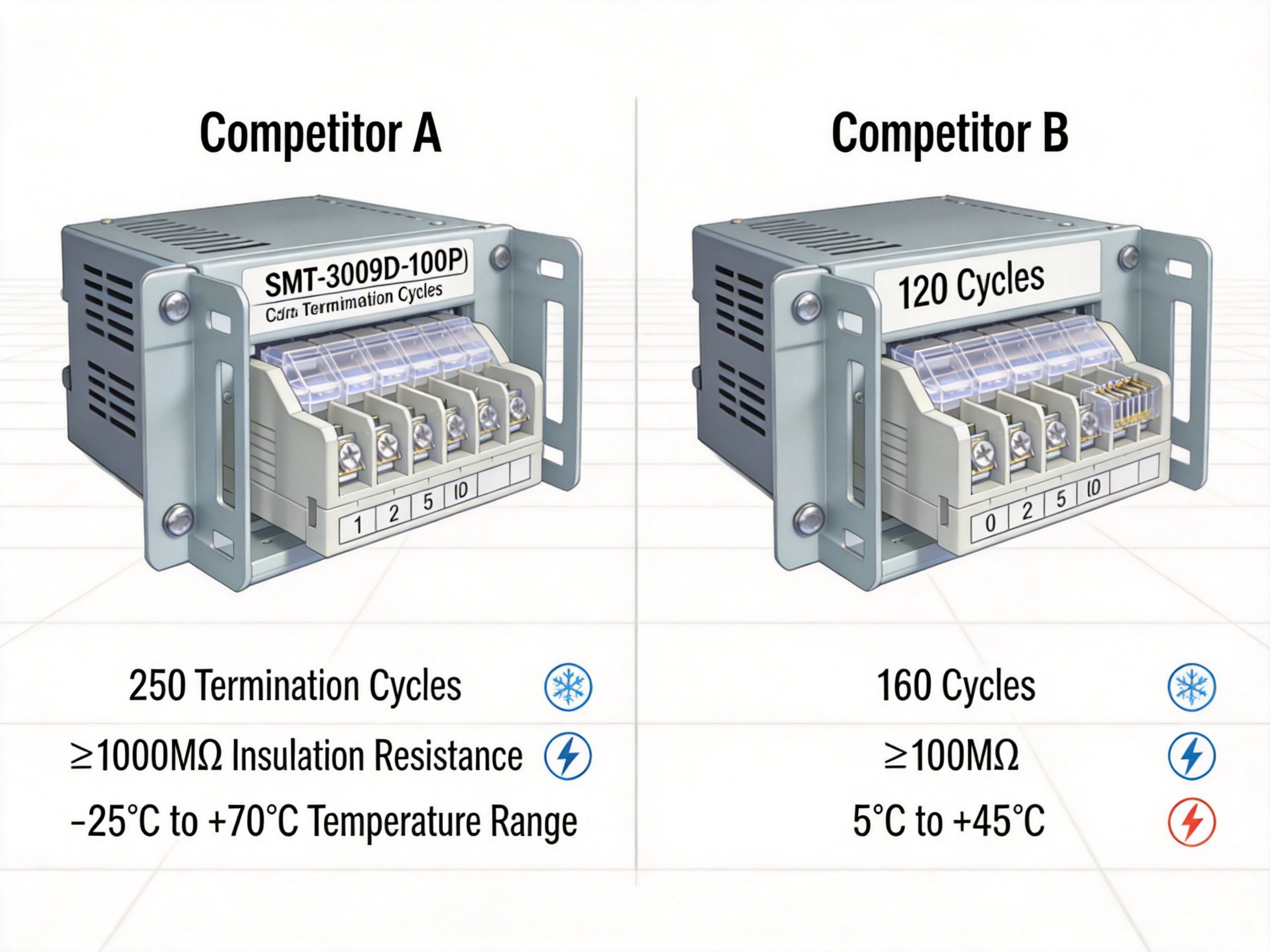 The SMT-3009D-100P is engineered to outperform conventional 110 wiring blocks in key areas: installation efficiency, compliance, durability, and environmental adaptability. Below is a detailed breakdown of its features and how they give it an edge over competitors: