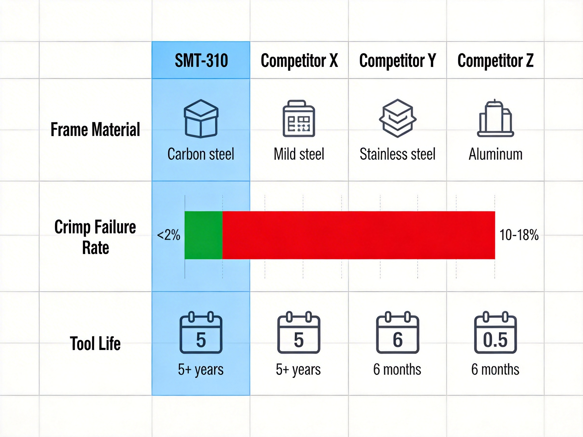 | Crimp Failure Rate | <2% | 10-12% | 5-7% | 15-18% |