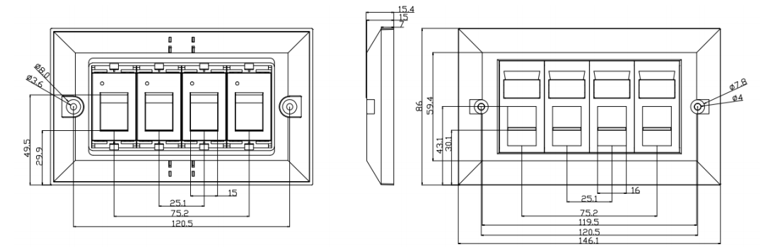 Custom Installations: Faceplates can be customized or configured for specific installations or unique requirements. They can incorporate a combination of electrical outlets, data ports, audio/video connections, and other components to meet the specific needs of a particular setting.