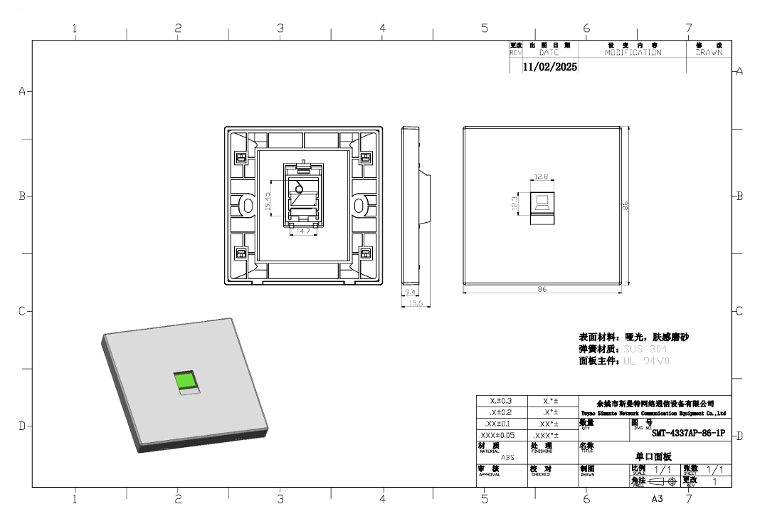 Modular Design: Some faceplates have a modular design, allowing for easy installation and removal of individual ports. These modular faceplate systems use snap-in or screw-in connectors, enabling quick customization and future expansion without replacing the entire faceplate.