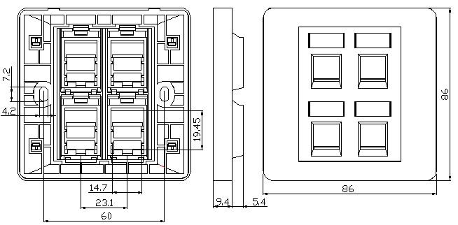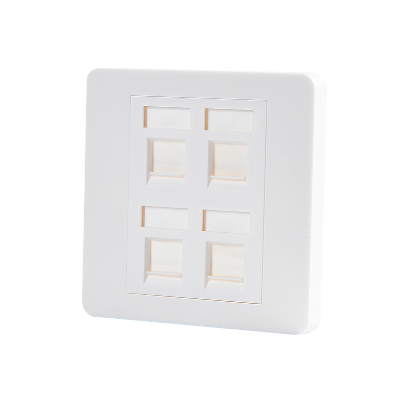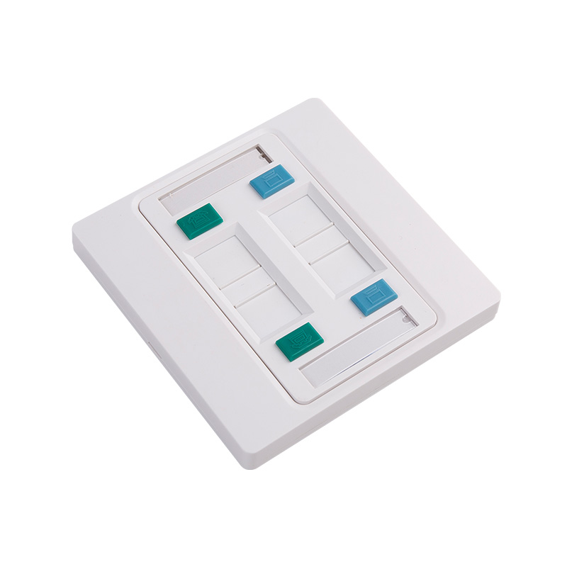 The use of a 4 port faceplate allows for a consolidated and organized approach to managing multiple connections in a specific location, reducing cable clutter and simplifying the installation and maintenance process. It is commonly used in residential, commercial, and industrial settings where multiple connections need to be accessed and managed efficiently.