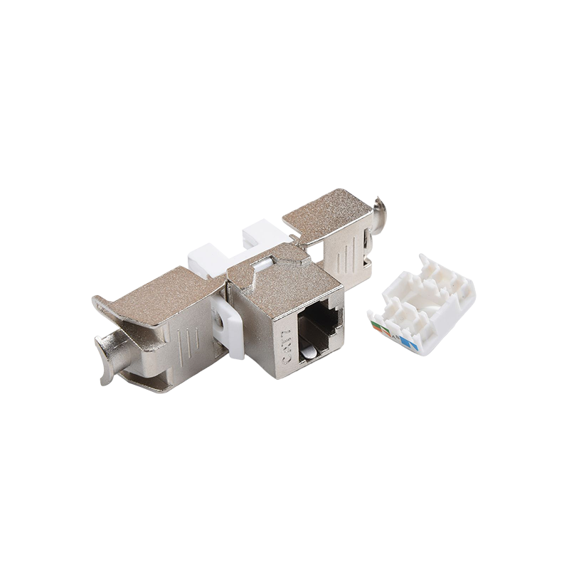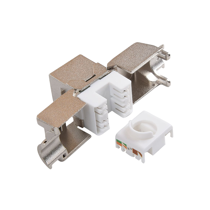 A keystone jack is a small, modular connector that can be used to terminate the end of a cable. The keystone jack is designed to fit into a keystone wall plate or patch panel, which provides a central location for connecting and disconnecting cables. The CAT7 keystone jack typically includes a series of conductive pins that are used to make connections with the wires inside the cable.