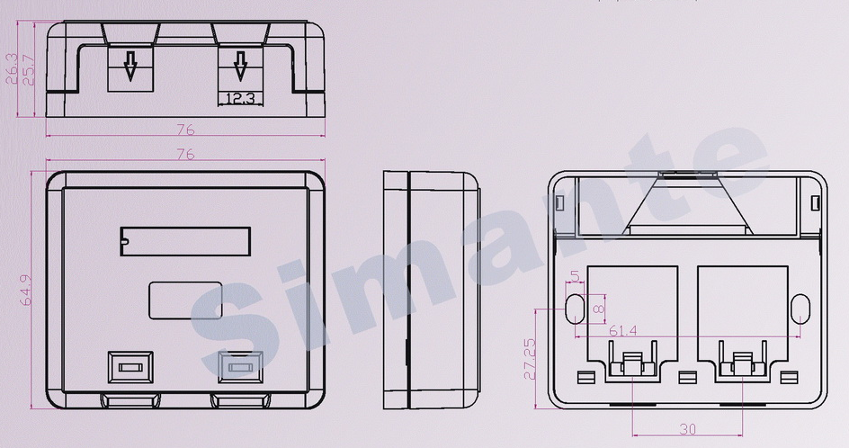 5. Material introduction: This desktop box product is used to connect the horizontal wiring and work area wiring on the same floor of the building, and is mainly used for wiring equipment and terminal equipment or adapter conversion connection. Product mating and mating cables are copper-axle twisted pair cables and copper-axle jumpers.