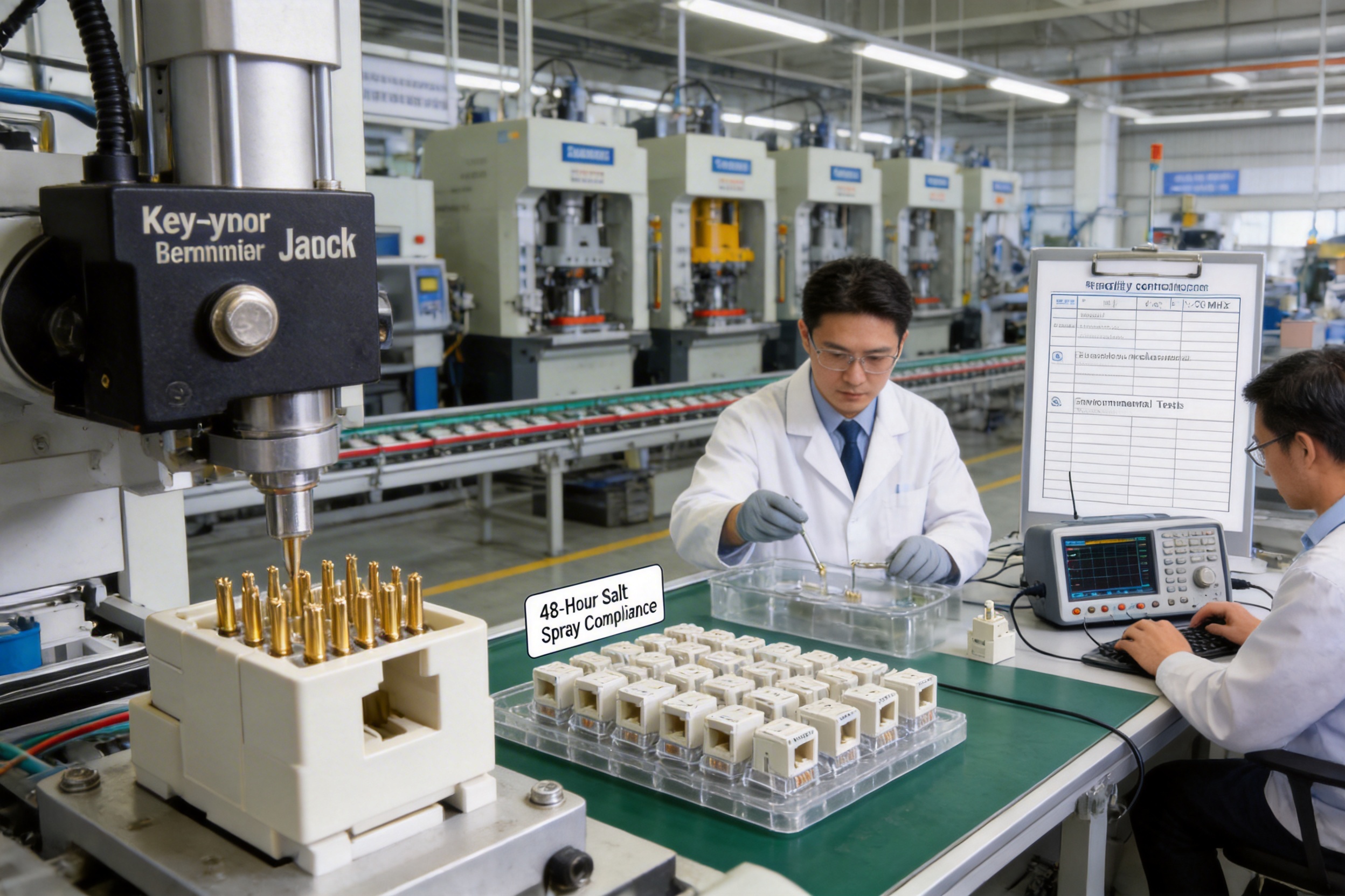 - Electrical performance tests: Frequency range, working voltage, withstand voltage, and insulation resistance are measured to ensure compliance with CAT6 standards.