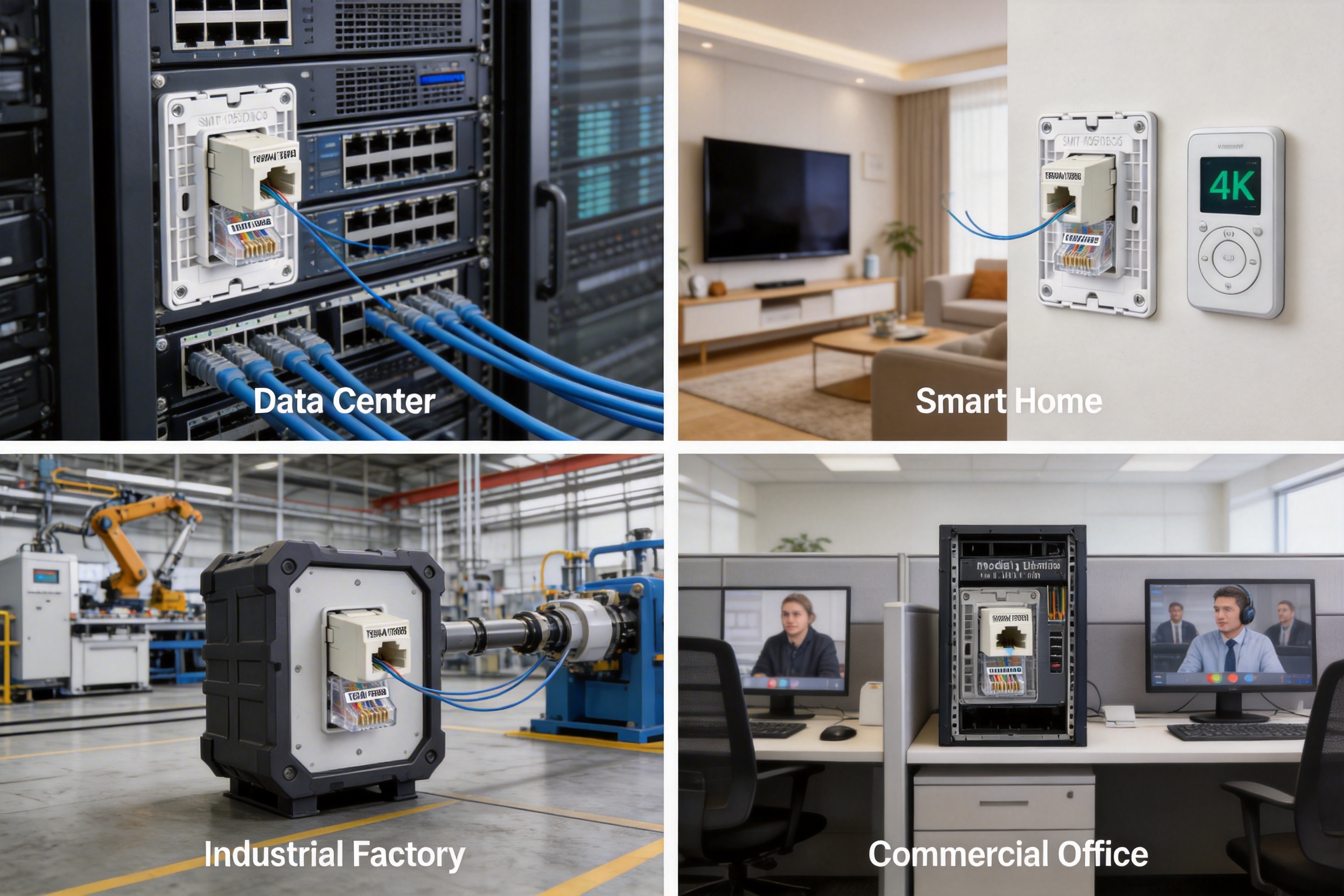 The SMT-1055D8C6 CAT6 keystone jack finds applications in a variety of sectors, thanks to its versatility and performance. Some key applications include: