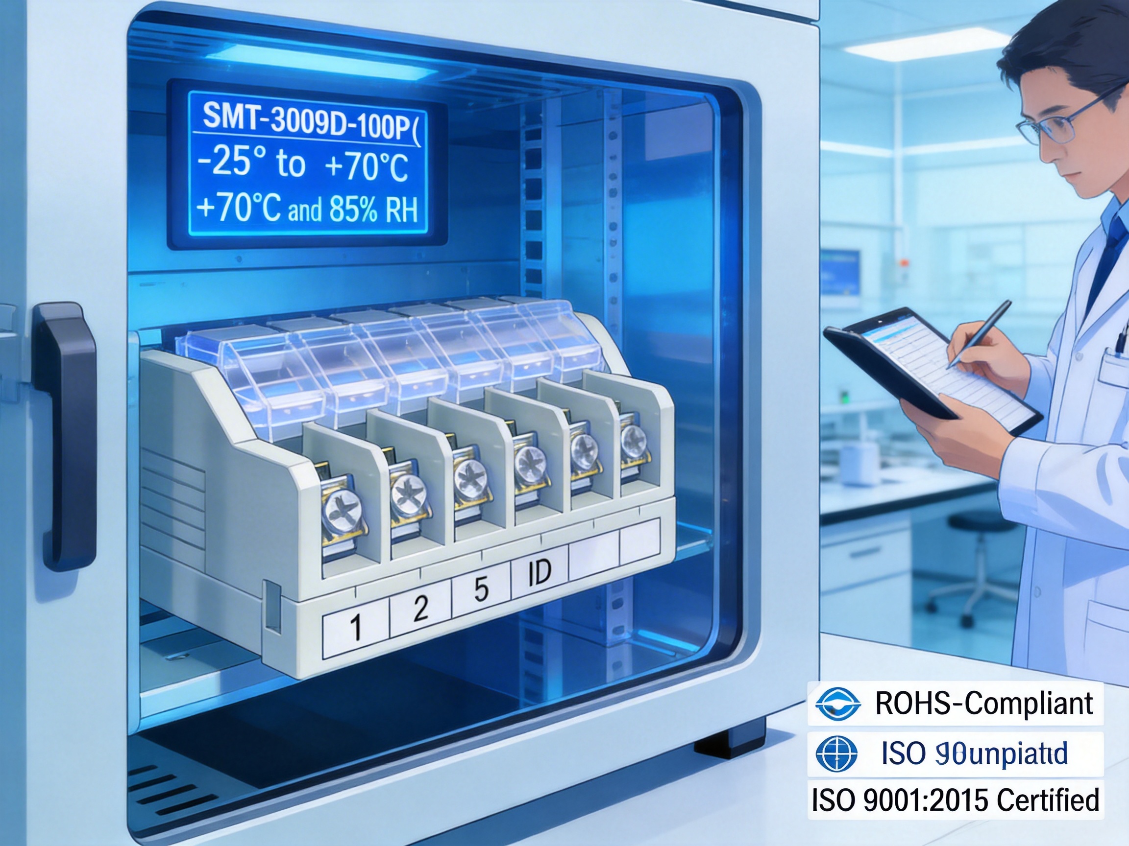 The SMT-3009D-100P undergoes rigorous environmental testing to ensure long-term reliability: