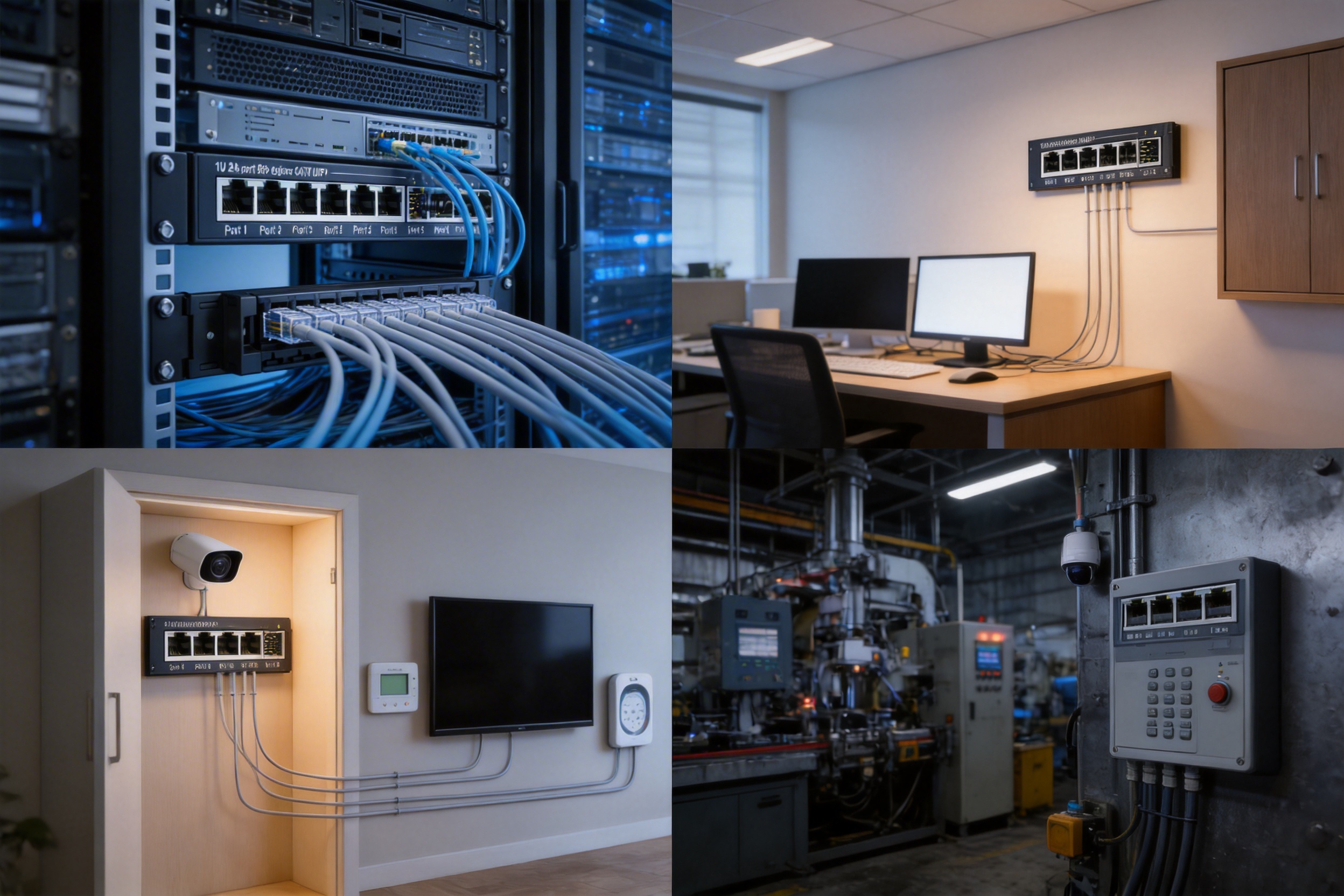 The 1U 24-port 180-degree CAT6 UTP patch panel is a versatile solution that can be used in a wide range of applications. Below are some of the most common use cases:
