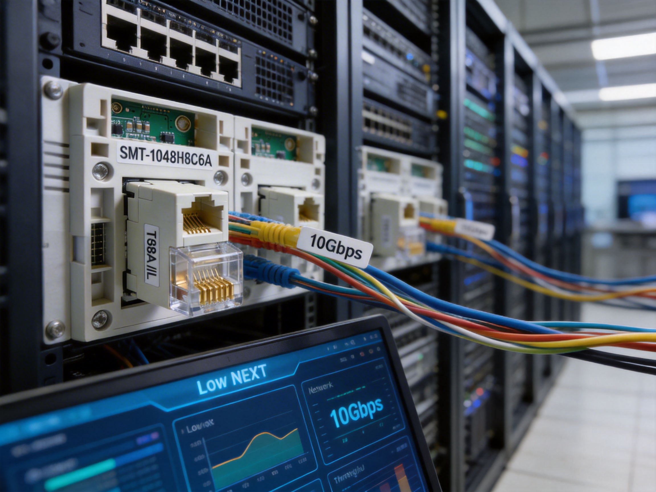 Data centers require high-speed, reliable cabling to support cloud computing, server farms, and storage systems. The SMT-1048H8C6A’s 10Gbps support and low NEXT make it ideal for connecting servers, switches, and storage devices. Its 750 insertion cycles also make it perfect for data centers where cables are frequently moved or replaced.