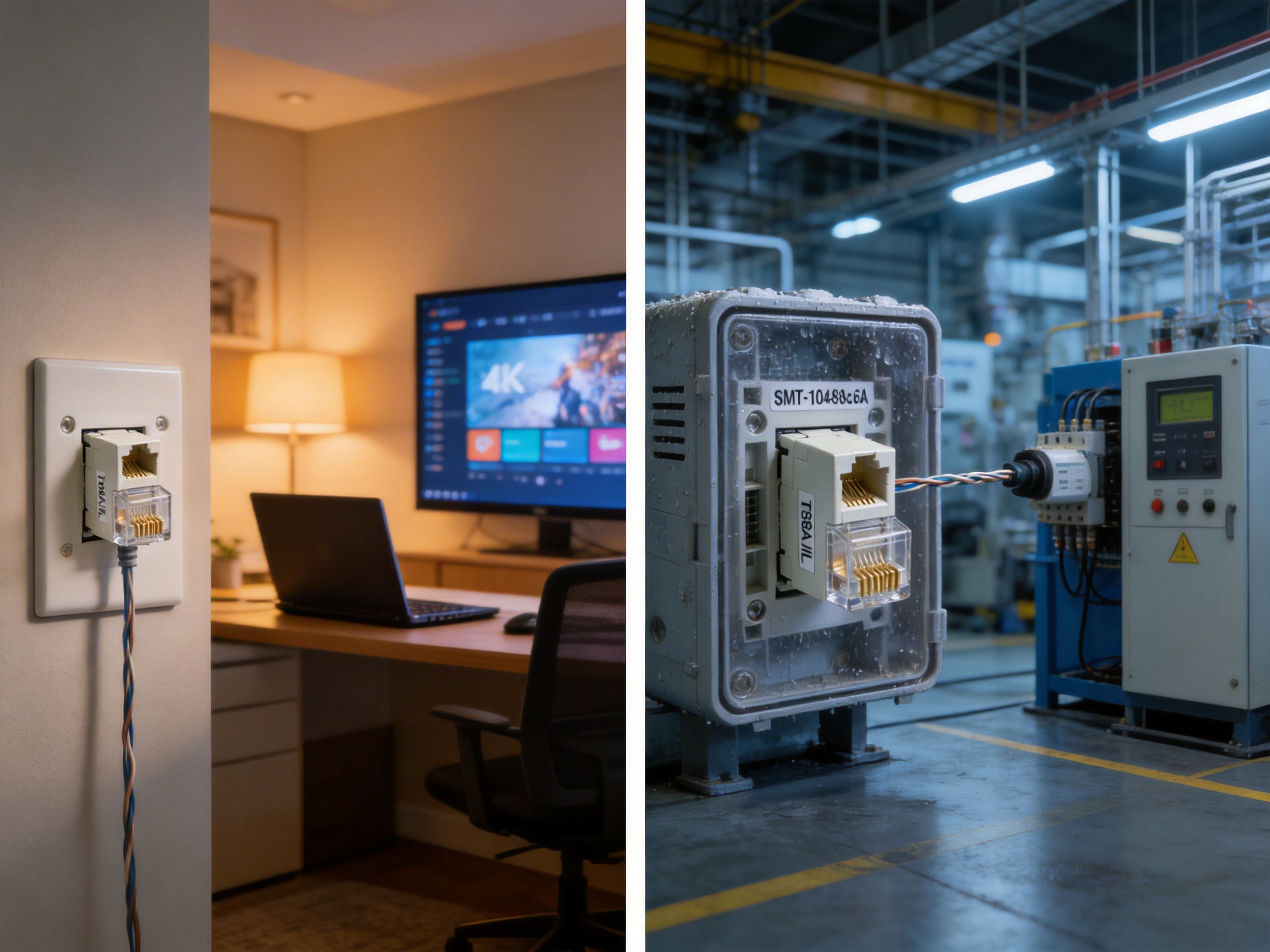 Smart homes require cabling that can support 4K/8K streaming, smart appliances, and home automation systems. The SMT-1048H8C6A’s 500MHz frequency range and low NEXT ensure that these devices operate smoothly without signal interference. Its environmental resilience also makes it suitable for use in attics, basements, and other areas with varying temperatures.