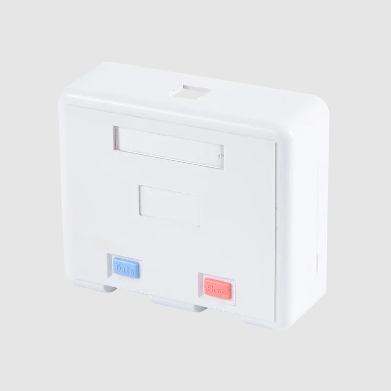 Unlike traditional recessed junction boxes (buried inside the wall), surface mount boxes are directly fixed to the wall, furniture, or ceiling. They are typically used with data modules (such as Cat6 modules) to provide a secure termination point for network cables and protect internal connections from physical damage.