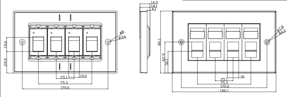 Custom Installations: Faceplates can be customized or configured for specific installations or unique requirements. They can incorporate a combination of electrical outlets, data ports, audio/video connections, and other components to meet the specific needs of a particular setting.