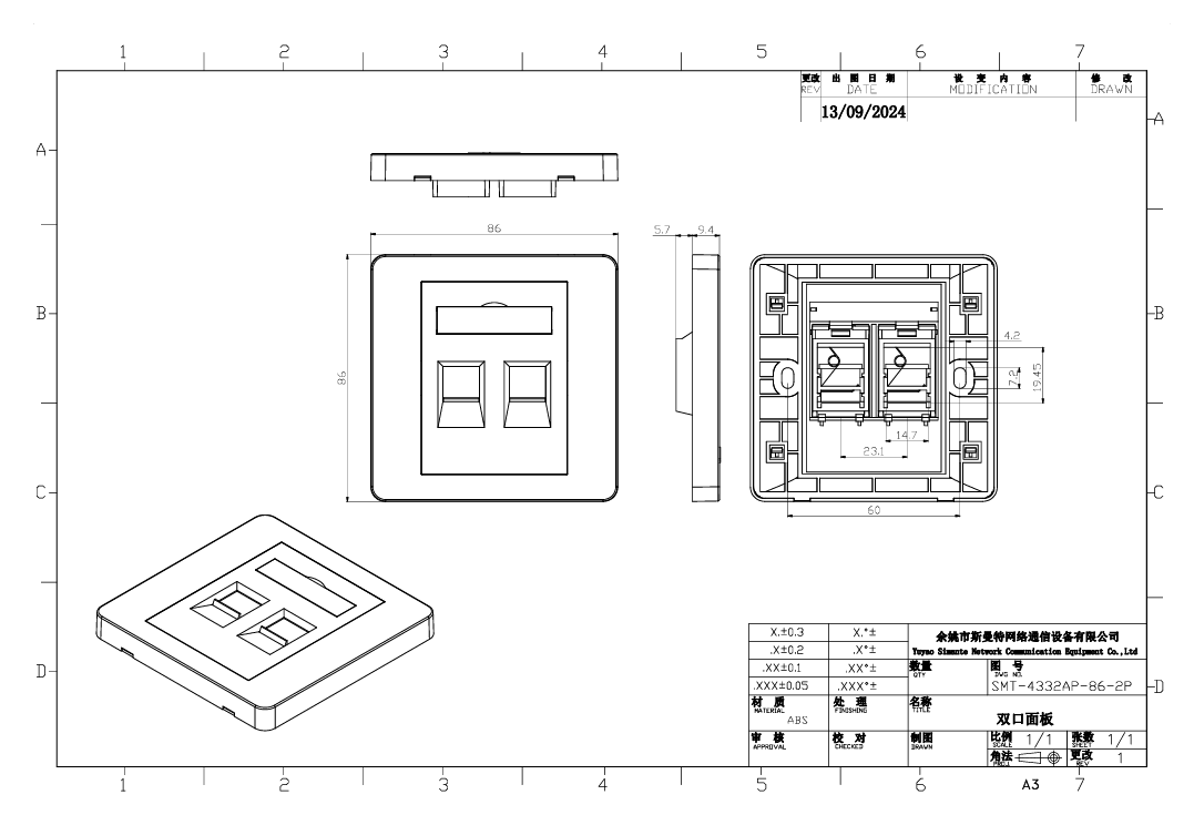 Customization Options: In addition to standard configurations, some faceplate manufacturers offer customization options. This can include personalized labeling, unique cutouts for specific connectors, or even custom color or design choices to match specific requirements or branding needs.
