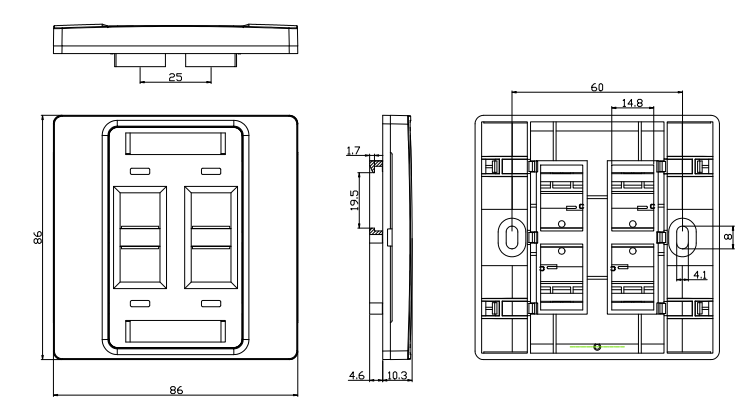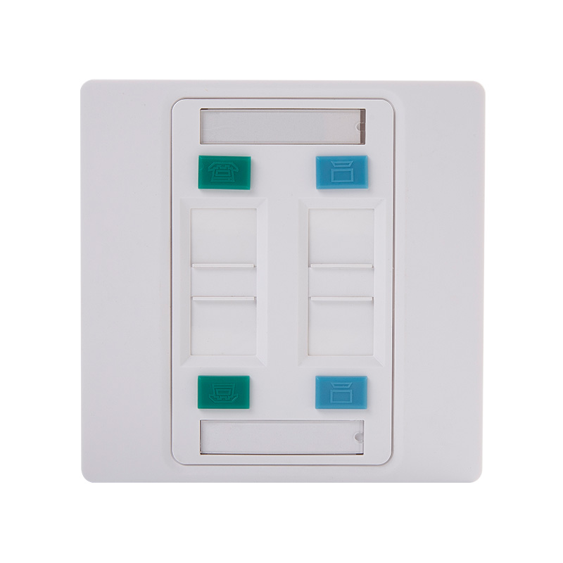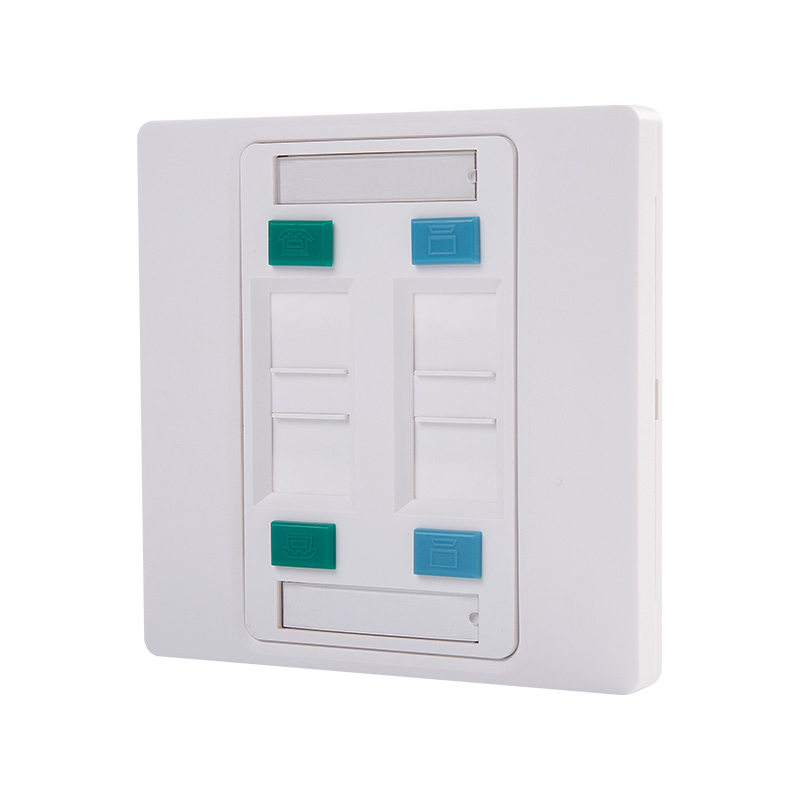 The use of a 4 port faceplate allows for a consolidated and organized approach to managing multiple connections in a specific location, reducing cable clutter and simplifying the installation and maintenance process. It is commonly used in residential, commercial, and industrial settings where multiple connections need to be accessed and managed efficiently.