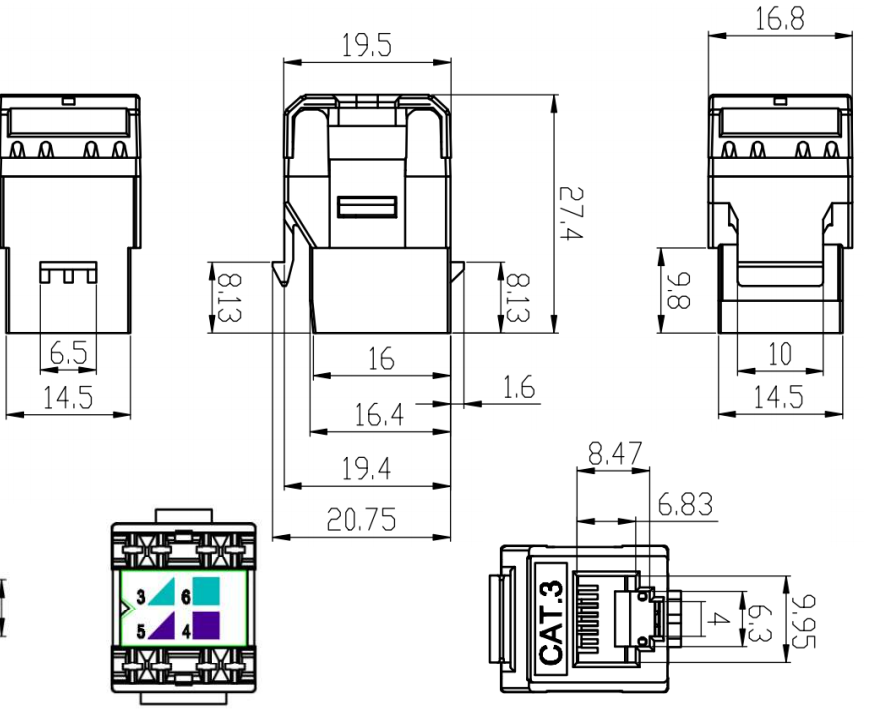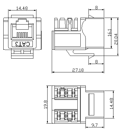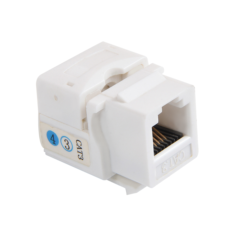 A CAT3 keystone jack is a type of connector used in structured cabling systems to terminate and connect twisted-pair cables, such as those used for telephone lines. The "CAT3" designation refers to the category of the cable that the jack is designed to support, in this case Category 3. This type of cable is able to support data rates up to 16Mbps and is commonly used for telephone and 10Mbps Ethernet networks.