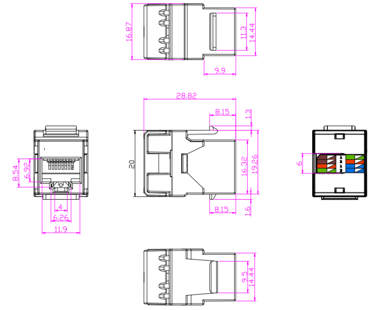 Jack Housing: The jack housing is typically made of plastic and provides the structure and protection for the internal components of the jack. It is designed to fit securely into a keystone opening or slot.