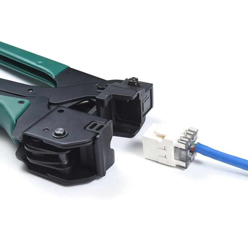 The installation process of a keystone jack typically involves stripping and preparing the copper cables, inserting them into the IDC slots, and using a punch-down tool to secure the connections. Once installed, the keystone jack provides a reliable and standardized connection point for network devices or patch cords.
